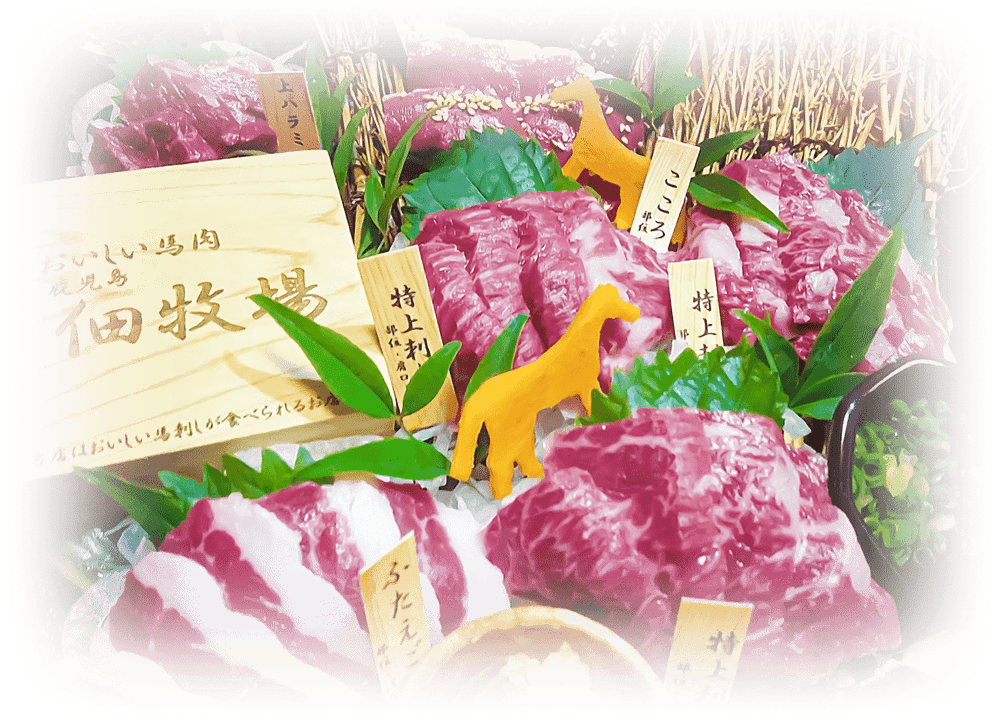 - 他社には真似できない36ヶ月間の肥育で、甘味ときめ細やかな食感を引き出した馬肉。佃牧場の馬刺しは、東京の一流ホテルでも使用される極上の一品です。
